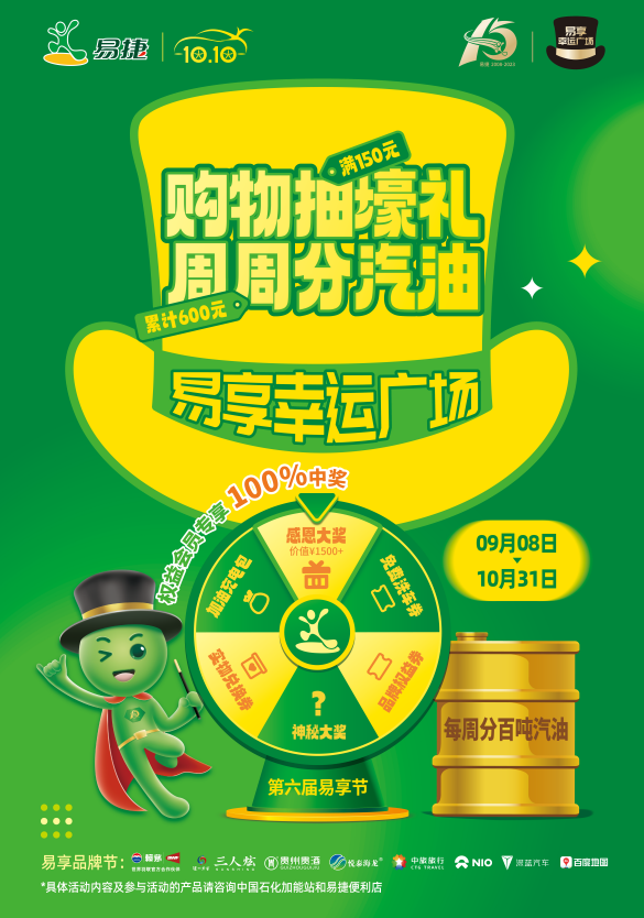 “易享节”是中石化易捷在2018年首创的全国性购物节,每年9月1日至10月31日,推出丰富优惠活动,在全国百城万店掀起购物狂欢,其中十月店庆日“加一元多一件”大促已成为知名IP。经过五年的发展,“易享节”影响力持续提升、规模不断扩大、内容更趋多元,已发展为国内备受瞩目的购物节。本届“易享节”,中石化易捷线上线下同步优惠,继续为消费者提供更多优惠促销活动和更多优质商品选择。