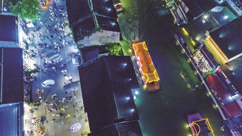 暑期旅游进入尾声,但锡城景区依然游客不减,各类新颖的消费场景轮番登场,激发夏日经济新活力。图为昨晚众多游客在南长街游玩。(宗晓东)