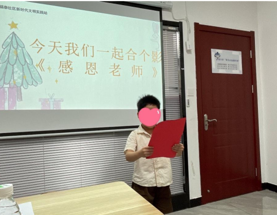 在第39个教师节来临之际,为感念师恩,弘扬尊师重教的优良传统,泰兴市滨江镇慈善社工站联合福泰社区开展“明光灼灼沃桃李,寸心微微寄衷情”活动。