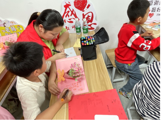 活动伊始,志愿者老师向孩子们讲解了教师节的来源及意义,让孩子们认识到教师对社会做出的伟大贡献,引导孩子养成尊师重教的优良品质。