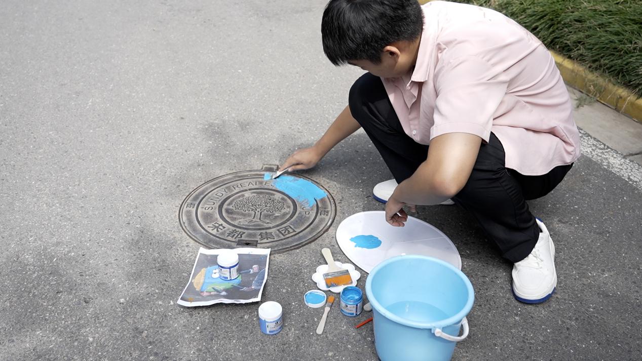 随后,针对“青年党员议事会”上讨论的社区文化氛围建设问题,社区青年党员志愿者带领大学生们来到宋都南郡国际花园小区内,为小区路面井盖设计彩绘,营造文化氛围。在社工的指导下,大家分工协作,以井盖为画布,认真勾勒图案,专心填充颜色,通过一个小时的涂鸦,小区井盖变身为一幅幅以“保护地球、宣传环保、爱护家园”为主题的宣传图案,成为小区里一道靓丽的风景,吸引不少居民驻足观赏。
