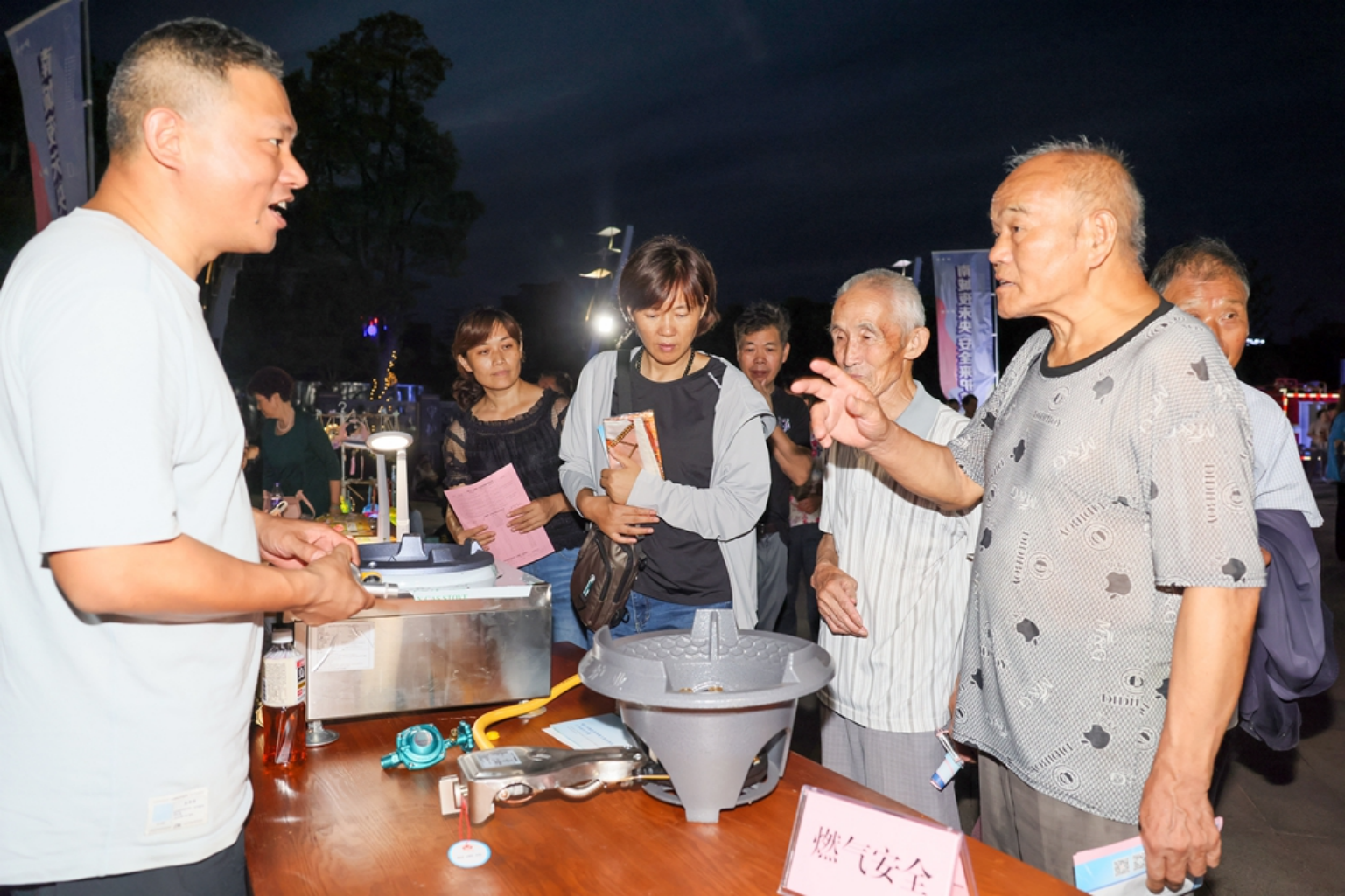 “这类可调节的低压阀,不能用,有安全隐患。”“私接电线为电动车充电,极易引起火灾。”……在安全宣传服务区里,工作人员围绕燃气安全、消防安全、食品安全、网络安全、工会探视、职业健康等相关安全知识,分设不同摊位,向前来逛夜市的群众娓娓道来生活中的安全细节。
