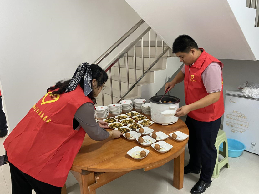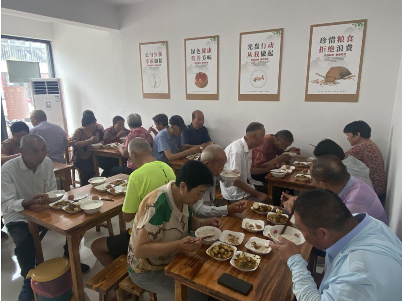 一大早,食堂门口就排起了长队,走进长者幸福食堂,只见餐桌椅整齐、台面明亮,干净的厨房里,工作人员正忙前忙后,为早晨出餐做最后的准备。酸菜豆腐、五香鸡蛋、热腾腾的白米粥,被分装好端到老人跟前,老人三五成群围坐在餐桌旁,边吃饭边聊天,碗筷的碰撞声、欢乐的交谈声,交织成一曲幸福的生活乐章。