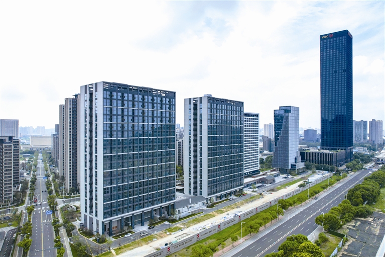 建成后,产业园将引进由科技部认证的众创空间孵化器,搭建国际国内一流的众创空间,培育引进具有国际竞争力的创新型科技企业。图为昨天上午,从空中俯瞰,整个产业园建设已进入最后各项装修阶段。(吴晨 丁家骏)