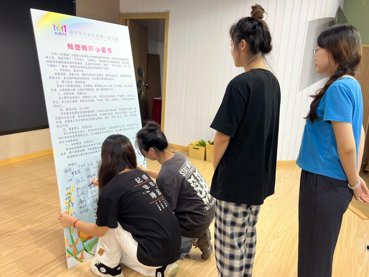 德高为师,身正为范。该园始终把师德师风放在教师队伍建设的首位。新学期以来,以“启智润心育桃李 立德树人铸师魂”为主题,通过召开动员会、开展警示教育、组织网络研讨、签订承诺书、健全监督机制等多种方式,着力建设一支“四有”好老师队伍,不断用师德师风书写幼教诗篇,用师者匠心凝聚幼教力量。(杨素)