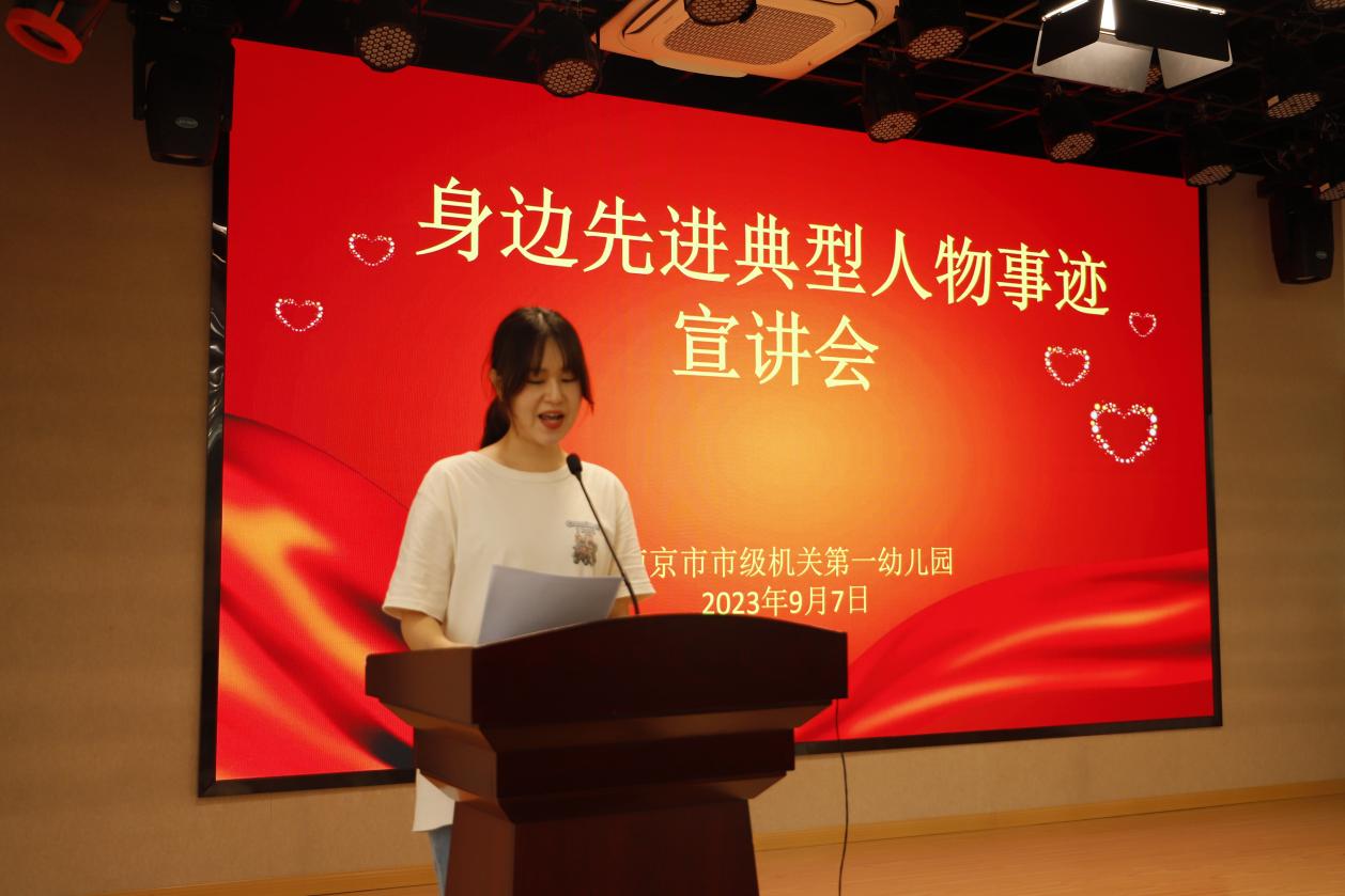 在第39个教师节即将到来之际,9月7日,南京市市级机关第一幼儿园召开身边先进典型人物事迹宣讲会,团支部书记张旭主持此次活动。