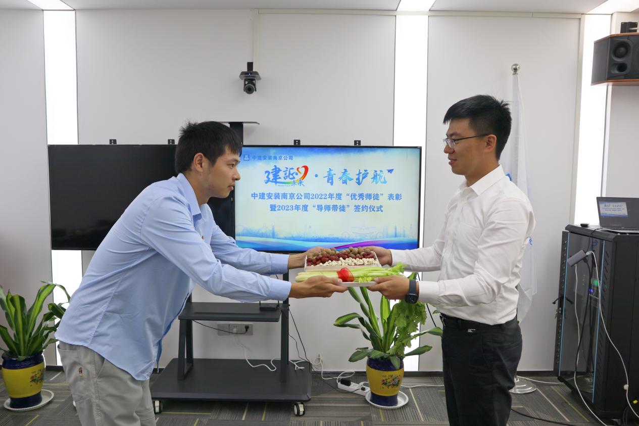 在中建安装南京公司,一直有“导师带徒”的光荣传统,多年来,通过“老带新、师带徒”模式,培养和造就了近千名知识型、技能型、专业型、创新型技术人才。在第39个教师节到来之际,87名2023年应届毕业生在江苏、安徽所辖的10个城市同步开展拜师仪式。