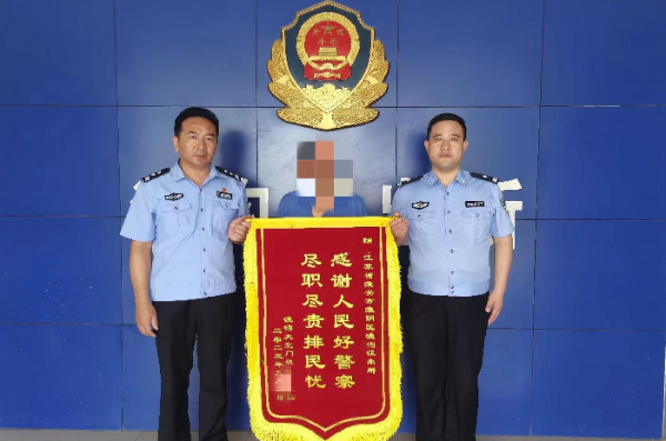 “警察同志,真的太感谢你们了,这么快就帮我们找到了车。”近日,张先生将印有“感谢人民好警察,尽职尽责排民忧”的锦旗送到淮安市公安局淮阴分局渔沟派出所,对为其找回被盗电动车的民警表示感谢,激动之情溢于言表。