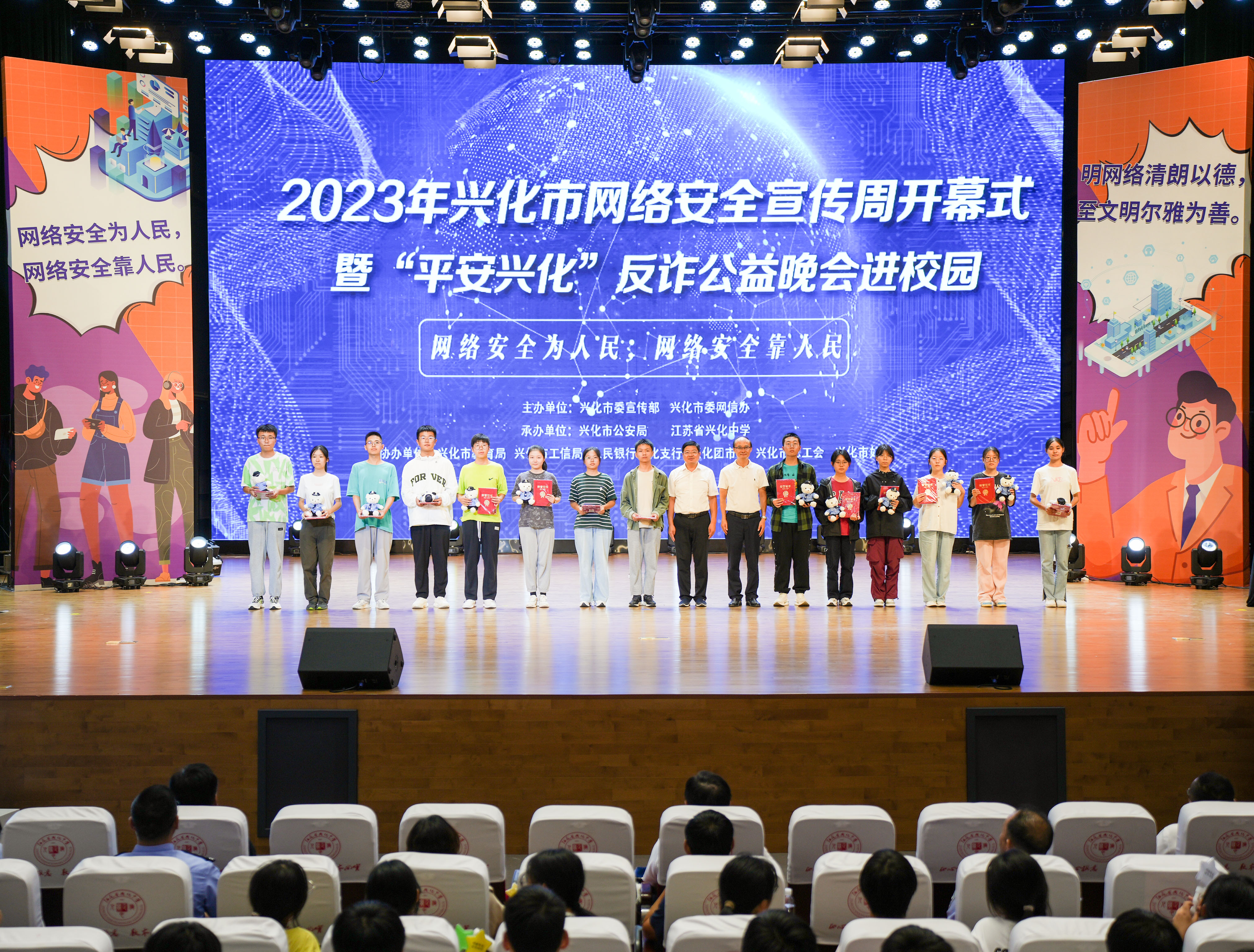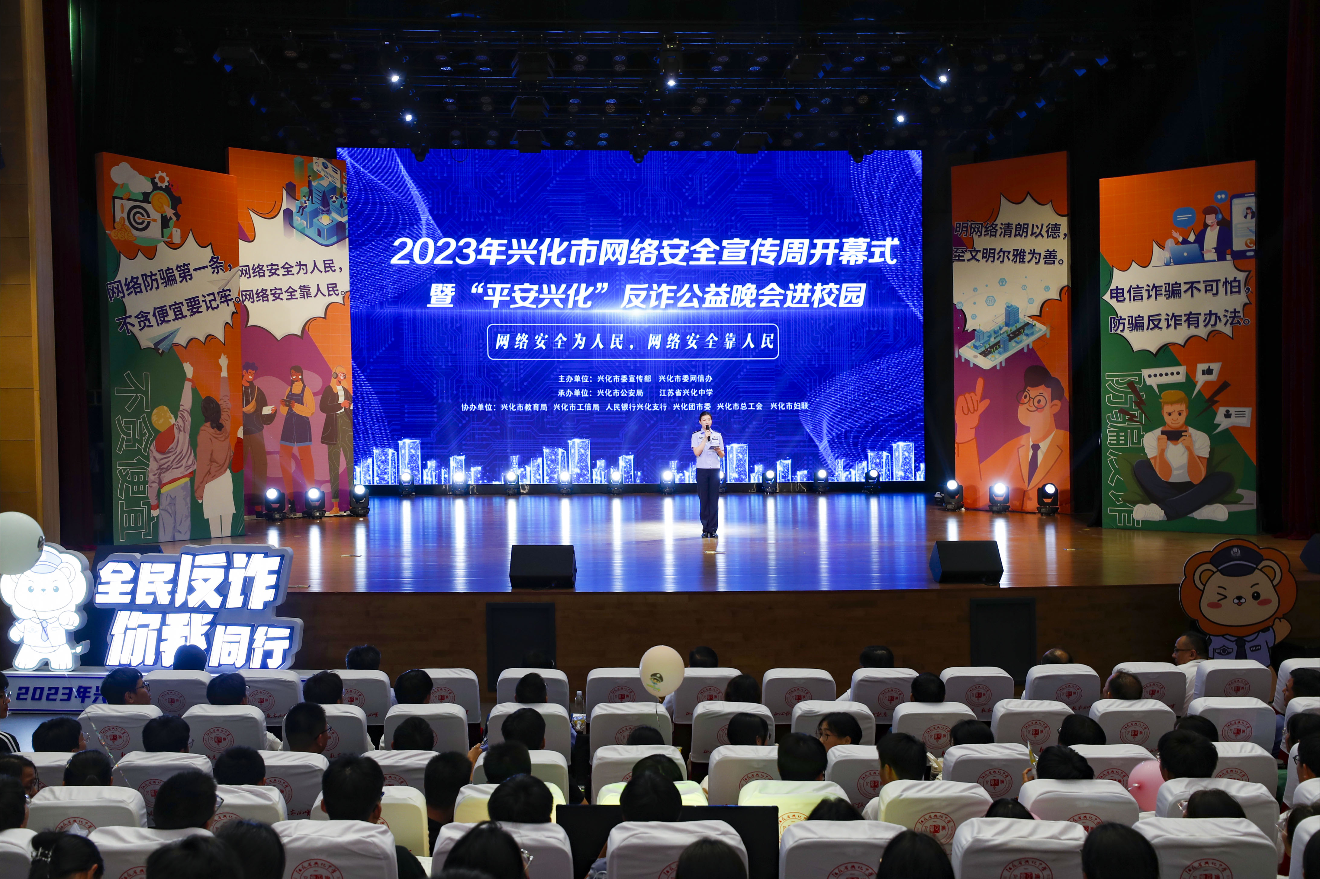 9月11日晚,2023年兴化市网络安全宣传周开幕式暨“平安兴化”反诈公益晚会在江苏省兴化中学精彩上演,一首方言版反诈说唱歌曲让全场1000多名学生热血沸腾,大家纷纷跟着旋律“唱响安全”,通过朗朗上口的歌词将网络安全知识牢记心中。