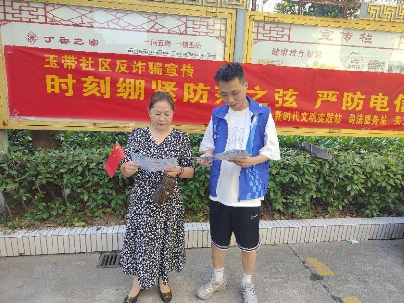一张“婆婆嘴”,提升居民反诈意识。9月6日,玉带社区联合辖区民警走街串巷入户,结合真实案例,向居民详细讲解常见防范手段,提醒群众提高安全防范意识,并且向居民发放防诈骗宣传材料,加深居民对不同类型诈骗手段的了解,提高防范意识。