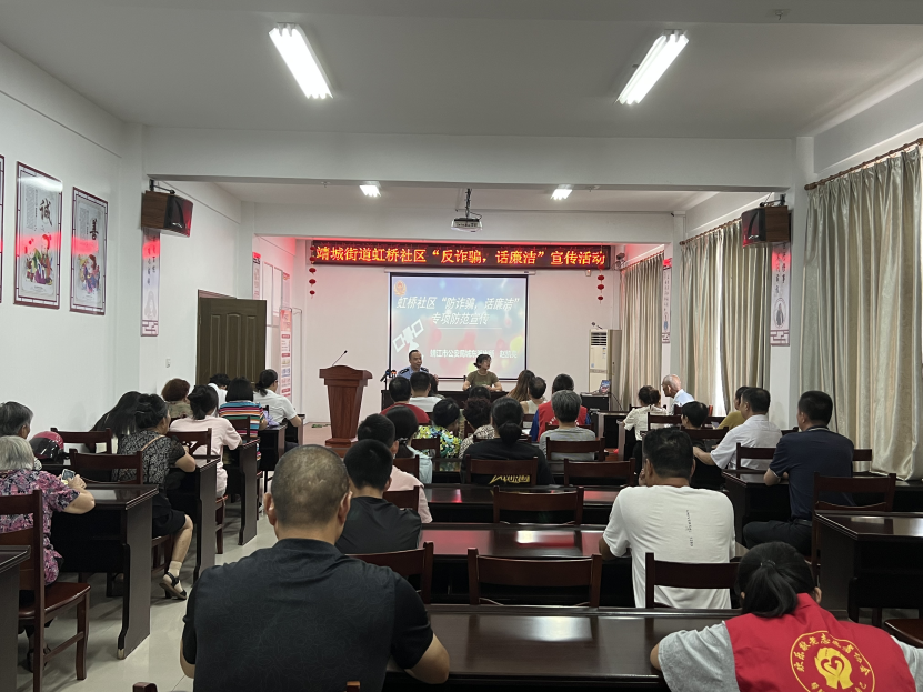 “以案为鉴”,提升居民反诈能力。9月7日,虹桥社区在新时代文明实践站开展“反诈骗 话廉洁”宣传活动。活动中,社区民警赵凯亮通过知识宣讲的形式向社区居民讲解了防范诈骗知识以及相关法律法规,并通过辖区内真实案例向居民介绍了电信诈骗的多种类型,呼吁居民提高警惕,提升防诈骗意识。