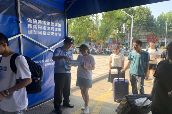 9月9日,在淮阴师范学院,开学第一天,淮安市公安局淮阴分局果林派出所民警李东玥、马小飞抓住大一新生开学的有利时机,积极向学生和家长开展反诈宣传活动,营造“全民反诈、全社会反诈”的浓厚氛围。