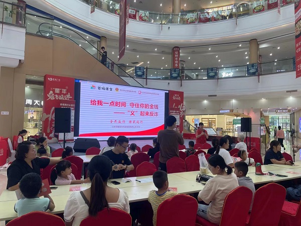 9月16日、17日,常州市见义勇为基金会联合常州武进区见义勇为基金会、常州市公安局武进分局,协同江苏省老龄事业发展基金会,一起走进辖区佳宏纺织厂、小太阳幼儿园、星湖商务广场,开展“义”起来反诈主题宣传,宣防志愿者、购物群众、企业员工和幼儿园师生等300余人参加。