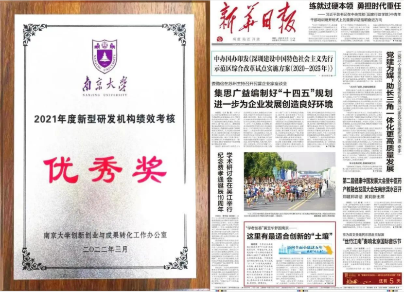江苏鸿程大数据研究院在南京大学新研绩效考核中获优秀(左)