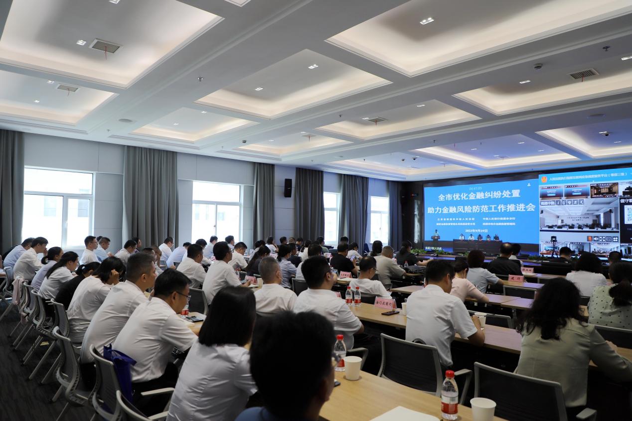 9月19日,南通市优化金融纠纷处置助力金融风险防范工作推进会在南通中院召开,各县市区法院设分会场。