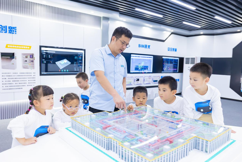 中建安装还组织开展了一场“建证世界更美好”主题开放日活动。建设者们带着孩子们体验了项目AI安全自动识别播报、大型机械设备自动化分析、高效施工机器人等建筑“黑科技”,让“小候鸟”打开眼界的同时,也深感父母在外务工的艰辛与不易。
