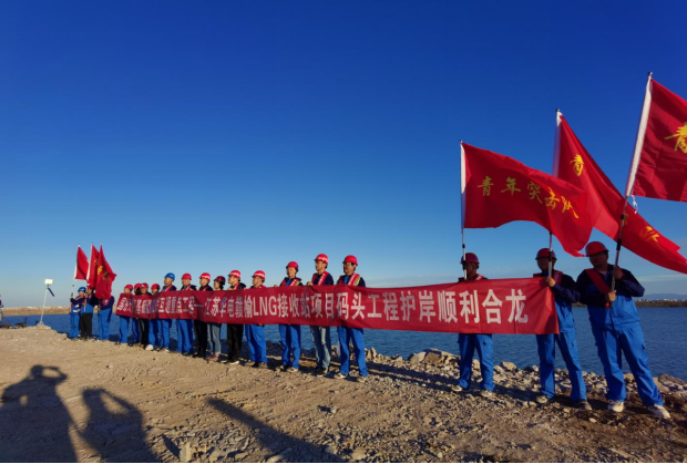 9月21日下午5点10分左右,国家天然气基础设施互联互通重点工程——江苏华电赣榆LNG接收站项目码头工程护岸完成了最后一车石料抛填,顺利实现合龙。标志着中国华电集团首座LNG接收站项目取得了重大进展,为项目陆域形成打下了坚实基础。
