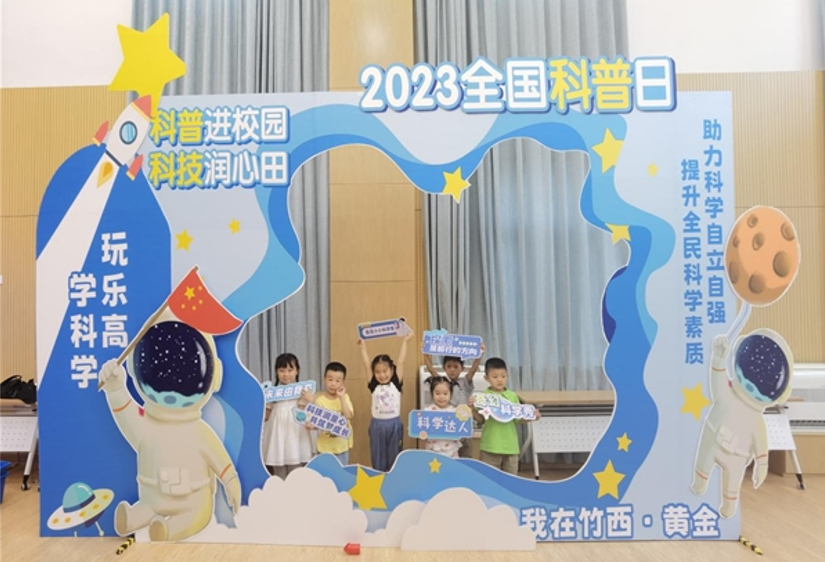 近日,扬州市邗江区竹西街道黄金社区联合竹西实验幼儿园开展了以“科普进校园 科技润心田”为主题的2023年全国科普日宣传活动。