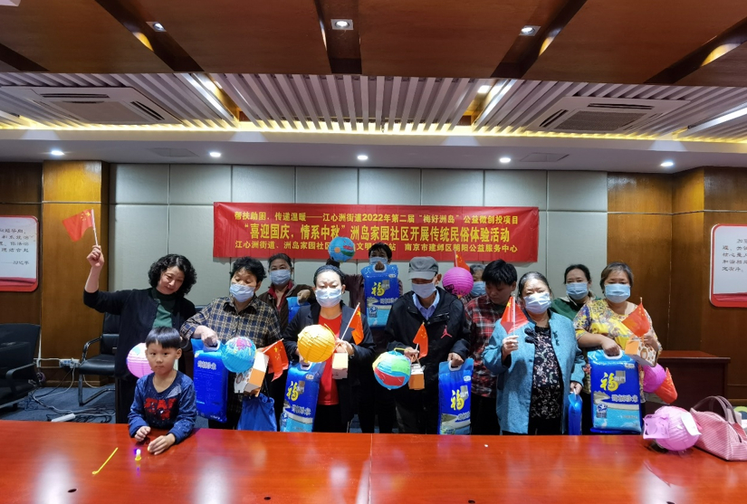 9月24日上午,南京市建邺区江心洲街道洲岛家园社区新时代文明实践站携手建邺区朝阳公益服务中心开展了以“喜迎国庆,情系中秋”为主题的传统民俗文化体验活动。居民朋友欢聚一堂,共抒爱国情、共享中秋月!