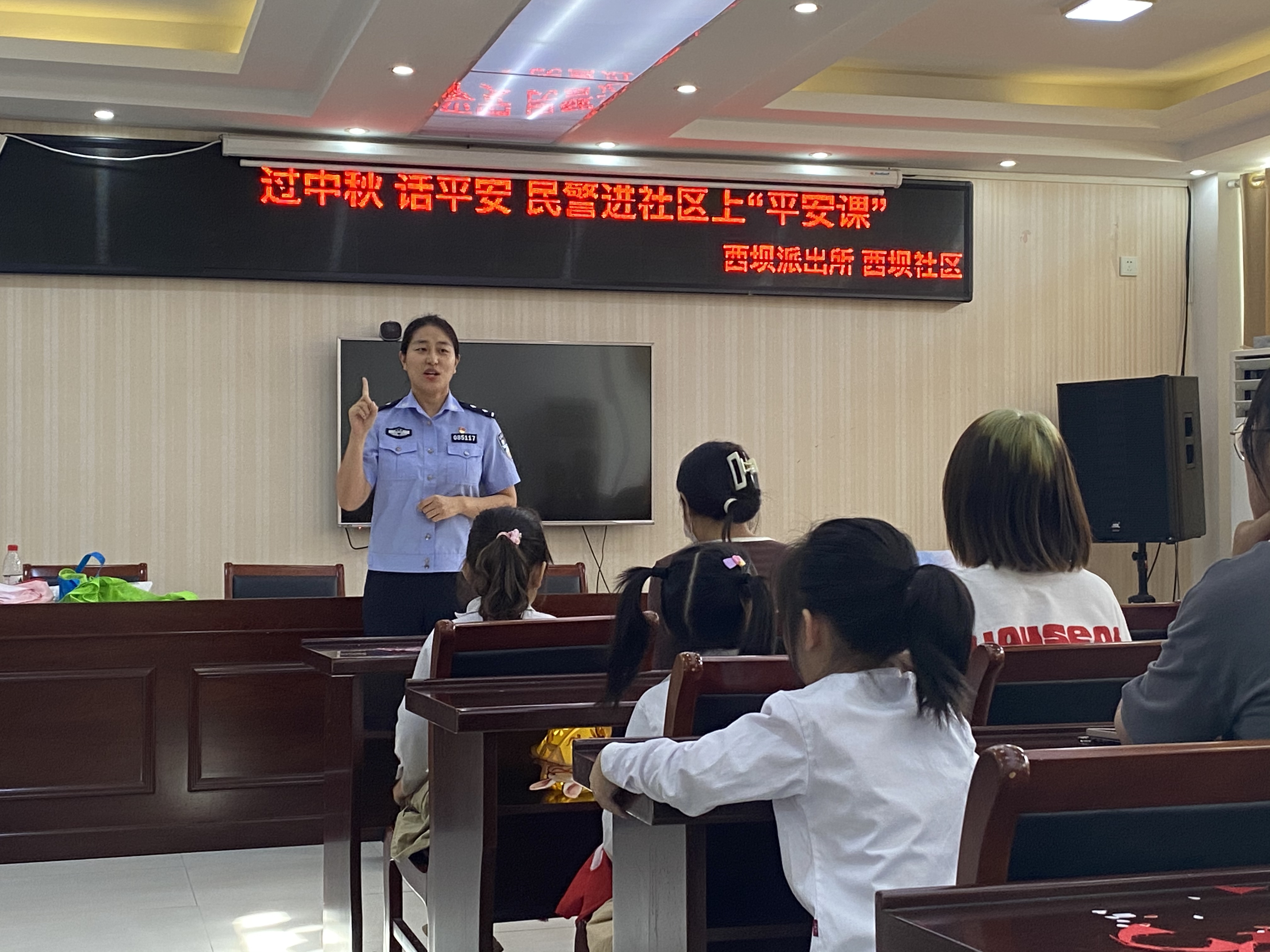 中秋、国庆来临之际,为切实提高辖区内青少年的安全防范意识,近日,淮安市公安局淮阴分局西坝派出所民警金雅文走进西坝社区,与王家营街道办工作人员一同为孩子们宣传安全知识,将安全知识作为节前礼物送给青少年,为青少年上一节“平安课”。