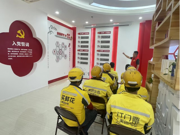 为加强对新业态新就业群体政治思想引领,太平街道各基层党组织依托“暖蜂驿站”,不断细化健全站点“红色”教育,为快递小哥们提供红色书籍现场阅读服务。