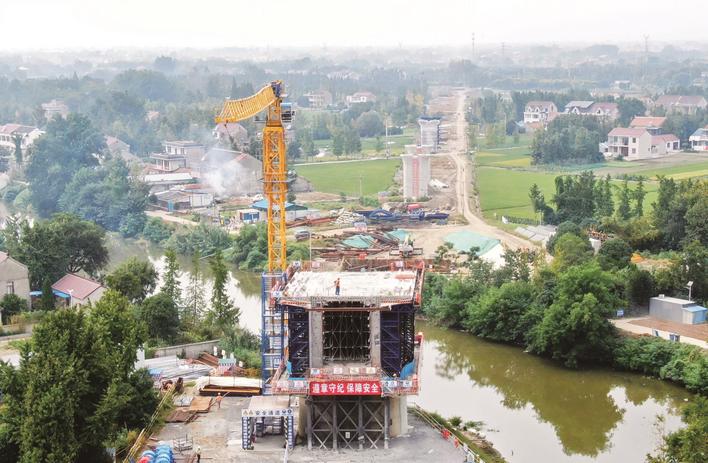 26日,无人机航拍沪渝蓉高铁(北沿江高铁)如皋段,施工人员正在进行端头凿毛作业。日前,由中铁十四局承建的沪渝蓉高铁通泰扬特大桥首个连续梁主墩0号块顺利浇筑完成,桥梁工程建设正式转入上部结构施工阶段。(尤炼)