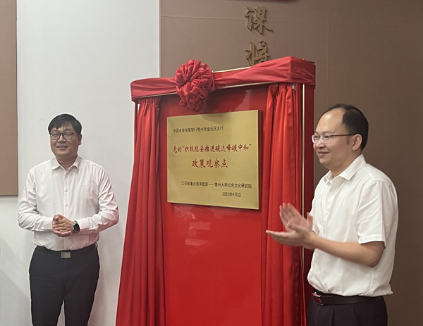 9月27日,“积极稳妥推进碳达峰碳中和”政策观察点揭牌仪式在常州大学文彰楼举行。