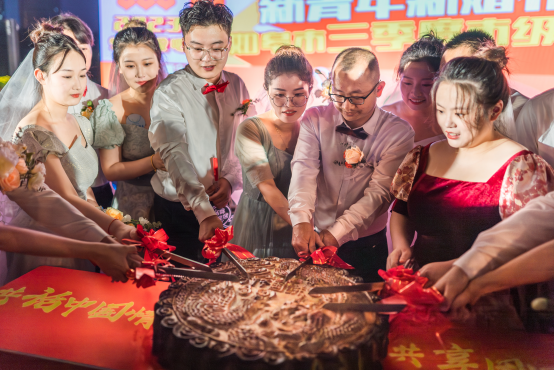 来自如皋高新区的10对新人在走红毯、接婚书、赠信物等礼成后,共同宣读了践行《如皋市新时代婚礼新风公约》结婚誓词,围观市民都感受到了新青年的新风尚。