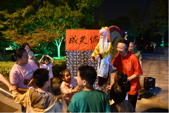 今年暑期,如皋市新时代文明实践中心策划了“口袋舞台”项目作为“你好,邻居”星空夜实践子项目,中秋游园会上,“口袋舞台”再次集结在“夜·实践”主题区。“偶来讲”"凤凰姐姐讲故事"“我爱汪汪、更爱文明如皋城”等各展风采,构成一幅群众演、群众游、群众唱、群众学、群众乐的生动场景。志愿者吴文灏说,“能用歌声给大家带去欢乐,让我感觉很有获得感,市民朋友当颁奖嘉宾,更是对我们最大的认可和褒奖。”