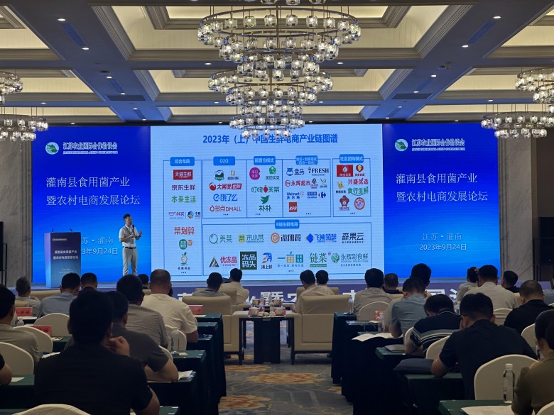近日,第24届江苏农业国际合作洽谈会·灌南县食用菌产业暨农村电商发展论坛在灌南举办。中国食用菌协会会长高茂林,副市长、东海县委书记宋波,县长苏卫哲,县人大常委会副主任周文生,副县长蒋国荣,县政协副主席王苏东,国内知名食用菌和电商行业的专家学者、优秀企业、电商新农人相聚一堂,共话交流合作,共谋菌业发展。