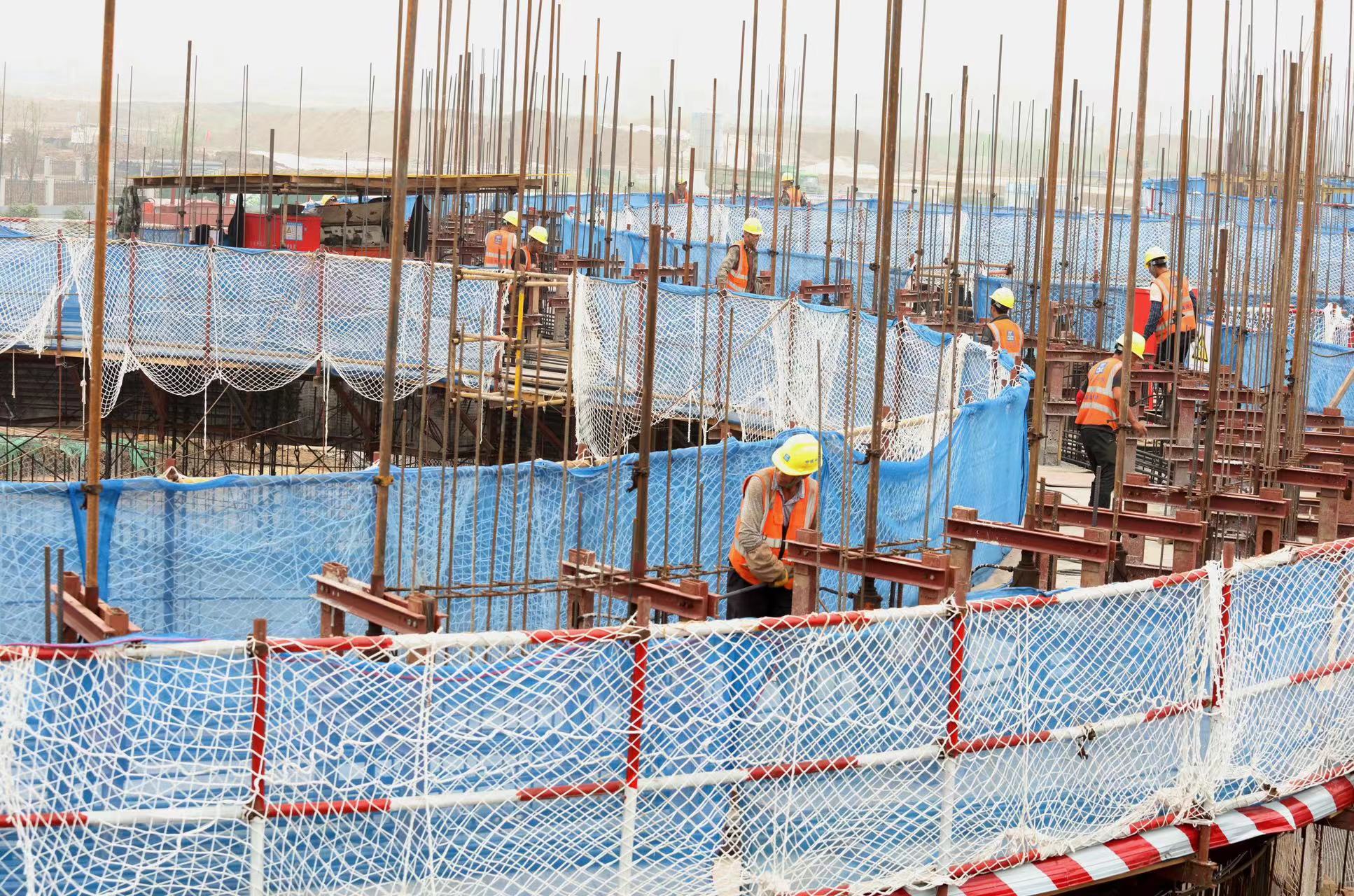 国庆假期是项目建设施工的黄金期,在省重大建设项目——苏粮淮安粮食仓储物流项目一期施工现场,可以看到塔吊林立、机械轰鸣,工人正在进行钢筋绑扎、模板安装、脚手架搭设等工作,项目建设者坚守岗位,全速推进工程建设。