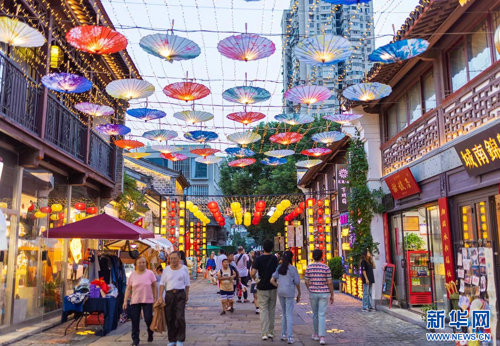 中秋、国庆假期,在千年古巷南京熙南里历史文化街区,一年一度的中秋笪桥灯市正式启动,让游客感受文化味浓、烟火气足的游玩氛围。