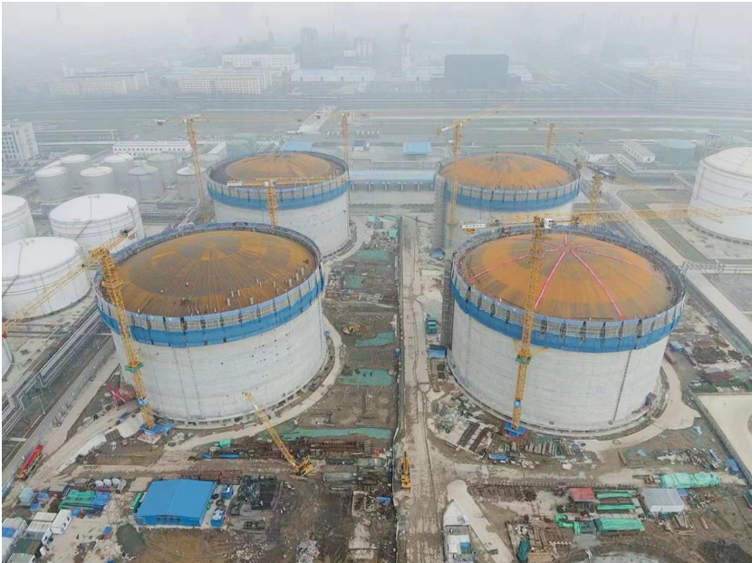 连云港荣泰(五期)项目于2023年2月14日开工建设,同时建设4座12万立方米低温乙烷储罐及配套设施。此次储罐升顶,是继9月11日首台TK6101储罐升顶后,历时16天完成的最后一座储罐升顶作业,标志着以TK6101罐作为文明施工样板,引领其他三个储罐快速履约的标杆管理举措得到了充分验证。