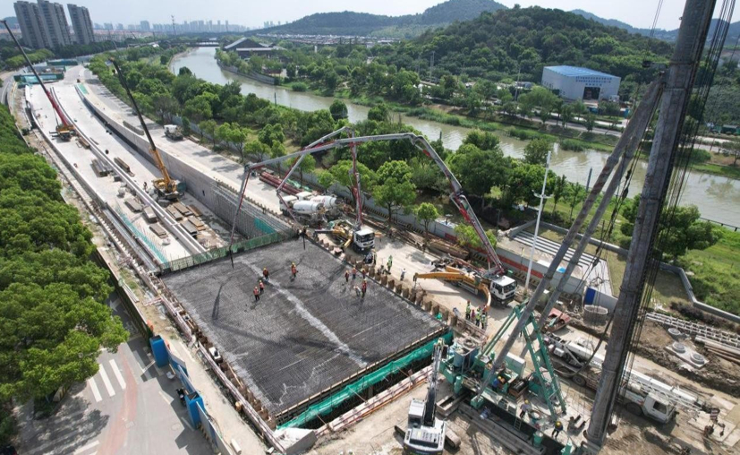 长假期间,通浒路改造工程项目施工现场也是一片热火朝天的大干景象:各工序有序穿插作业、混凝土罐车往返运输、钢筋运输车穿梭于各个工作面;180多名施工人员扎根工地,一顶顶“安全帽”在钢筋水泥间忙碌穿梭……