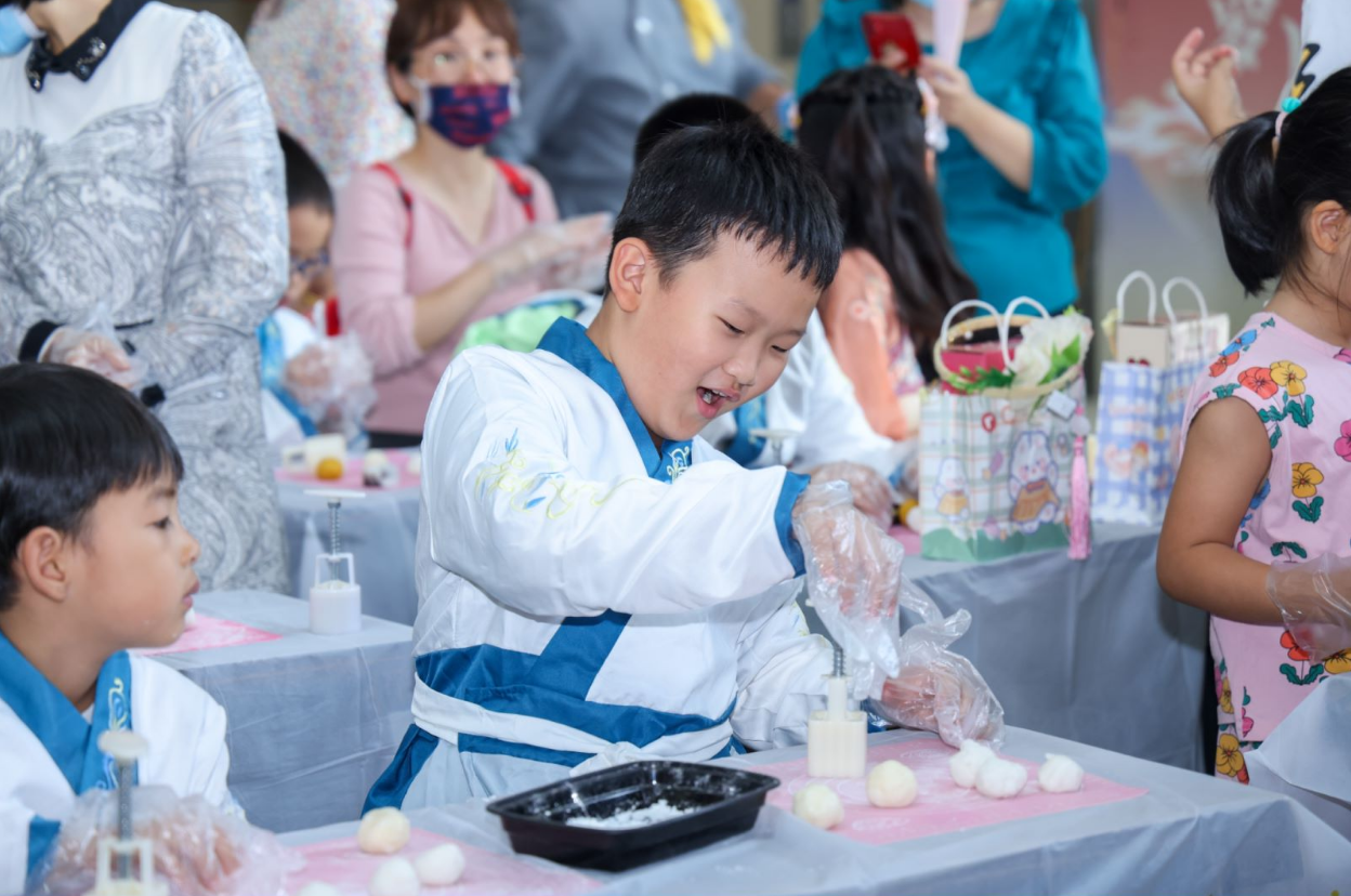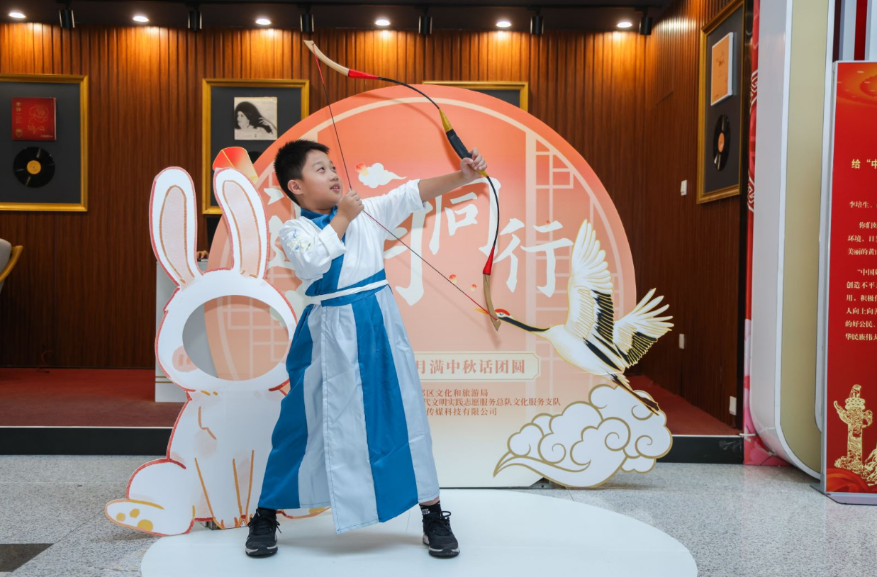 活动中,孩子们还体验到冰皮月饼的制作乐趣,当看到一个个晶莹剔透的冰皮月饼从自己手中诞生时,孩子们都十分兴奋和满足,并表示“这次活动太有意思了!”“下次我还想参加这样的活动!”在“诗词飞花令,佳节猜灯谜”环节,孩子们踊跃参与,或开动脑筋、苦思冥想,或你来我往、共同商讨。大家在欢快而热烈的气氛中争相破解谜题,品味传统习俗的趣味。中秋牵手国庆,传统节日少不了传统射艺。亲子家庭左手持弓,右手拉弦,体验了射箭,让大家对中国古代君子六艺之一的射箭有了一定的了解,感受到了射箭的乐趣。