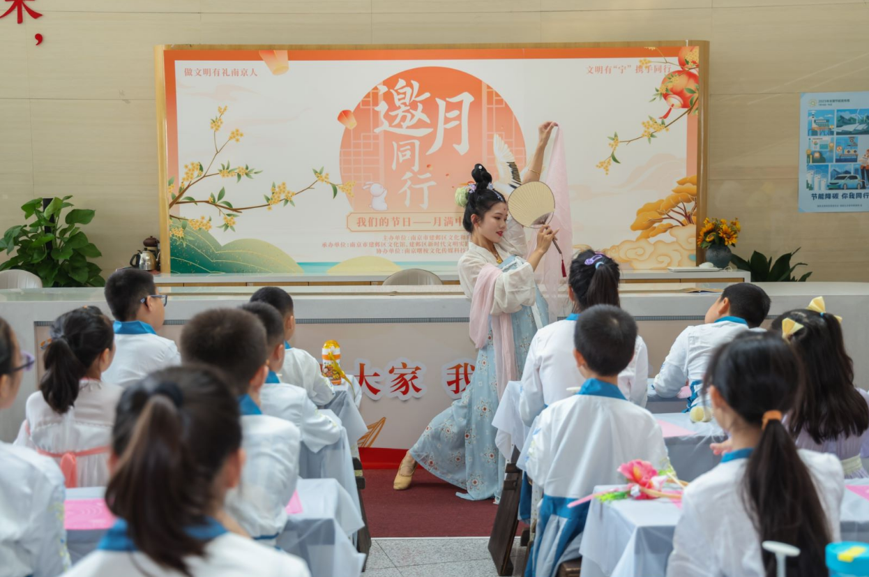 中秋、国庆假期,由南京市建邺区文化和旅游局主办,南京市建邺区文化馆、建邺区新时代文明实践志愿者服务总队文化服务支队、南京非物质文化遗产专业学院、尤里卡教育承办的 “月满华诞 大美中国”中秋国庆佳节传统文化主题文明实践系列活动在建邺区文化馆陆续举办。