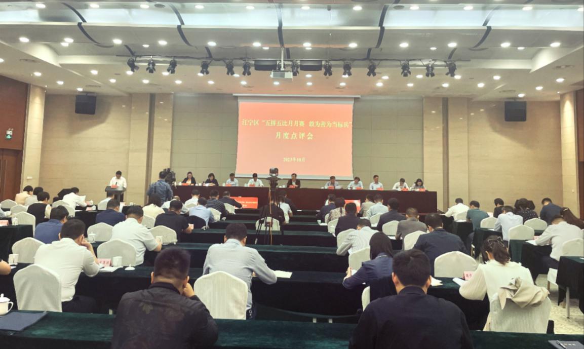 中秋、国庆假期最后一天,10月6日下午,南京市江宁区召开“五拼五比月月赛 敢为善为当标兵”月度点评会和“城乡环境大整治 精细治理大提升”月月赛点评会,动员全区上下拿出拼的状态、比的气势、赛的决心,聚焦全年经济发展目标任务,全面开展大招商、全力主攻大项目、全程提速审批链、全员冲刺四季度,奋力交出感恩奋进、走在前列的高质量发展过硬答卷。