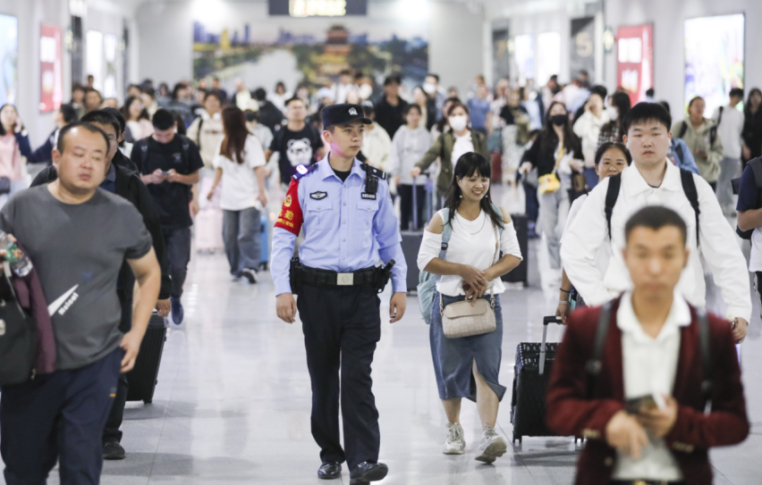 中秋国庆假期铁路迎来客流高峰,淮安东站日均到发旅客突破8万人次,刷新开站以来客流高峰记录。为应对客流高峰、保障旅客安全出行,南京铁路公安处淮安东站派出所提前部署,启动高等级安保勤务,完善各类应急预案,全体民警取消休假,保持在岗在位,增加一线警力投入,强化站区巡逻和治安面管控,不断提升旅客群众安全感和满意度,圆满保障假期旅客安全出行。