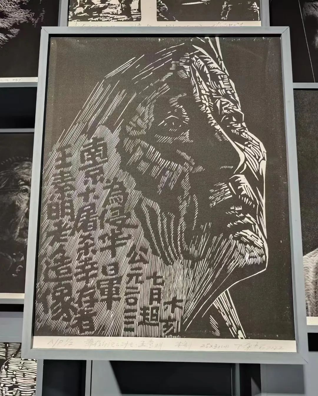 “永远的铭刻——抗战历史记忆版画展”在纪念馆3号临展厅开展。获悉展览里有一幅南京大屠杀幸存者王素明的版画作品,其女儿徐宏和女婿夏天行特地赶来看妈妈。从层层叠叠的皱纹中,夏天行看到了岳母的悲伤。他说,面容下的阴影表明了她南京大屠杀幸存者的身份,就像是一个挥之不去的影子,从眼神中又看到了她对和平的向往。