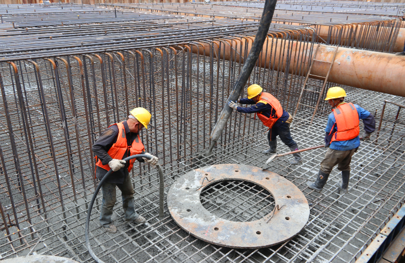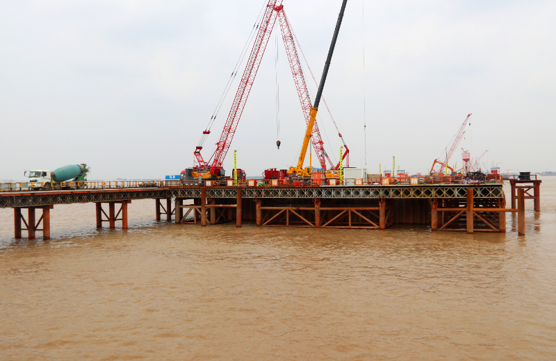 目前,崇启公铁长江大桥3号主墩钢围堰正在吸泥下沉中,基础钻孔桩紧锣密鼓,崇启公铁长江大桥(一分部)水上钻孔桩414根,已经完成315根,陆地钻孔桩536根,已完成421根;崇明特大桥(一分部)钻孔桩2138根,已完成467根,大桥建设有序推进。