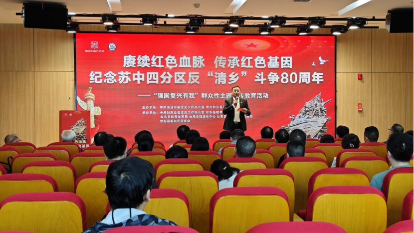 10月12日下午,“南通史志大讲堂”暨纪念苏中四分区反“清乡”斗争八十周年活动在南通市如东县图书馆举行。本次活动的主题是“赓续红色血脉,传承红色基因”,共同回顾红色历史,汲取奋进力量。