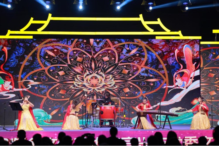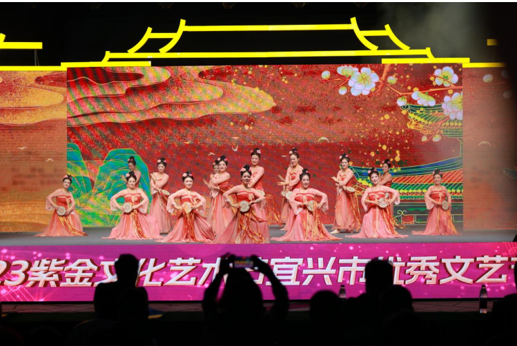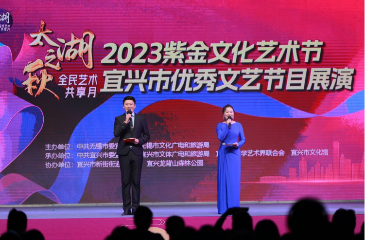 近日,由无锡市委宣传部、无锡市文广旅游局主办,宜兴市委宣传部、宜兴市文体广电旅游局、宜兴市文联等联合承办的“太湖之秋”全民艺术共享月——“2023紫金文化艺术节”宜兴市优秀文艺节目展演活动,在宜兴龙背山森林公园举行。本场演出汇集了宜兴近年来活跃在基层一线的群众文艺骨干力量,其中不乏无锡市“群芳奖”“文艺奖”获得者等一批优秀人才。活动现场,小品《蛙声一片》、民乐小合奏《丝路拾韵》、小锡剧《陪我演出戏》、童声合唱《出发吧》等新创文艺节目轮番上演,激起阵阵掌声。与此同时,江苏公共文化云同步进行了直播推送,线上线下累计近3万人次观看。
