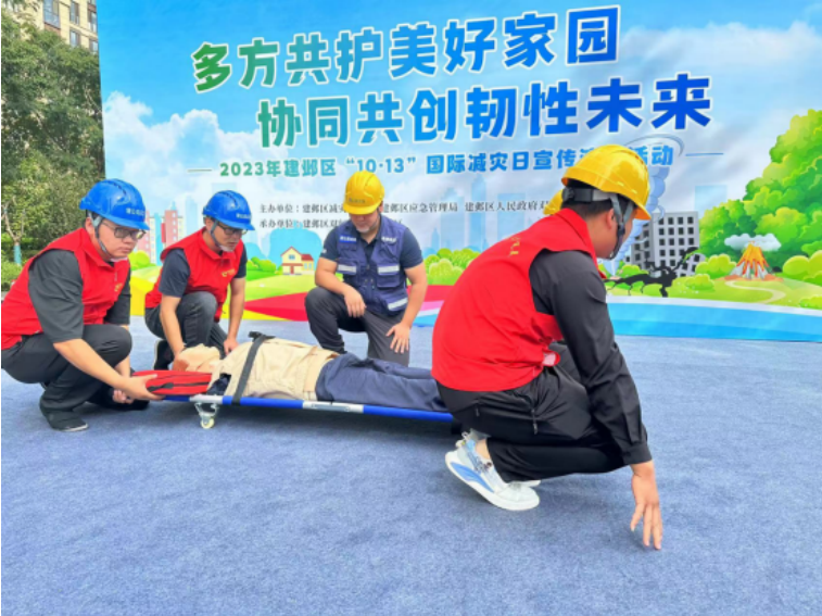 10月13日下午,南京市建邺区应急管理局在建邺区双闸街道升荣社区开展主题为“共同打造有韧性的未来”的2023年国际减灾日宣传演练活动,通过以点带面提韧性、多方协同促提升,深入推进防灾减灾宣教走深走实,构建防灾减灾救灾的人民防线。