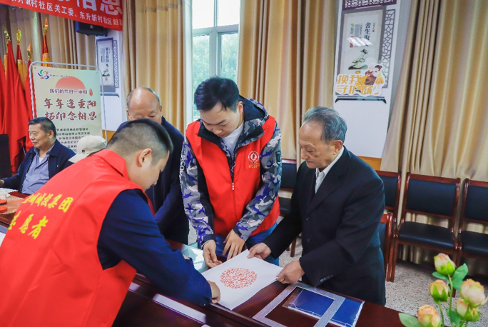 10月20日,为弘扬中华民族敬老爱老的传统美德,丰富精神文化生活,营造关爱老年人的浓厚氛围,盐城市亭湖区志愿服务总队、大洋街道新时代文明实践所、东升新村社区新时代文明实践站等联合开展了“年年逢重阳,拓印念相思”党建联盟活动,为老人们献上丰富多彩的暖心服务。