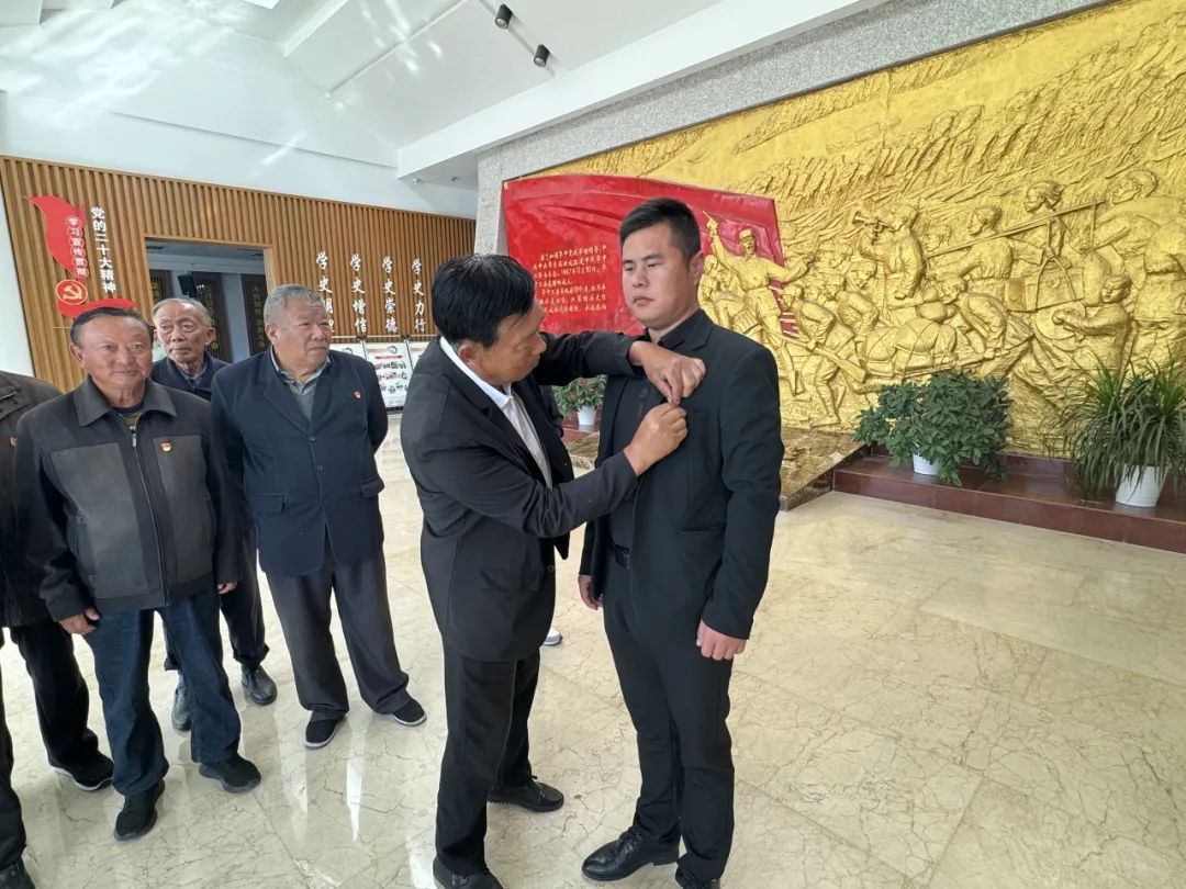 活动中,老党员为新加入党组织的年轻党员亲手戴上党徽,勉励年轻党员要继承党的优良传统、履行党员责任义务,时刻用优秀共产党员的标准严格要求自己,不忘初心、牢记使命,继续将共产党员全心全意为人民服务的精神和艰苦朴素的光荣传统继承和传递下去!