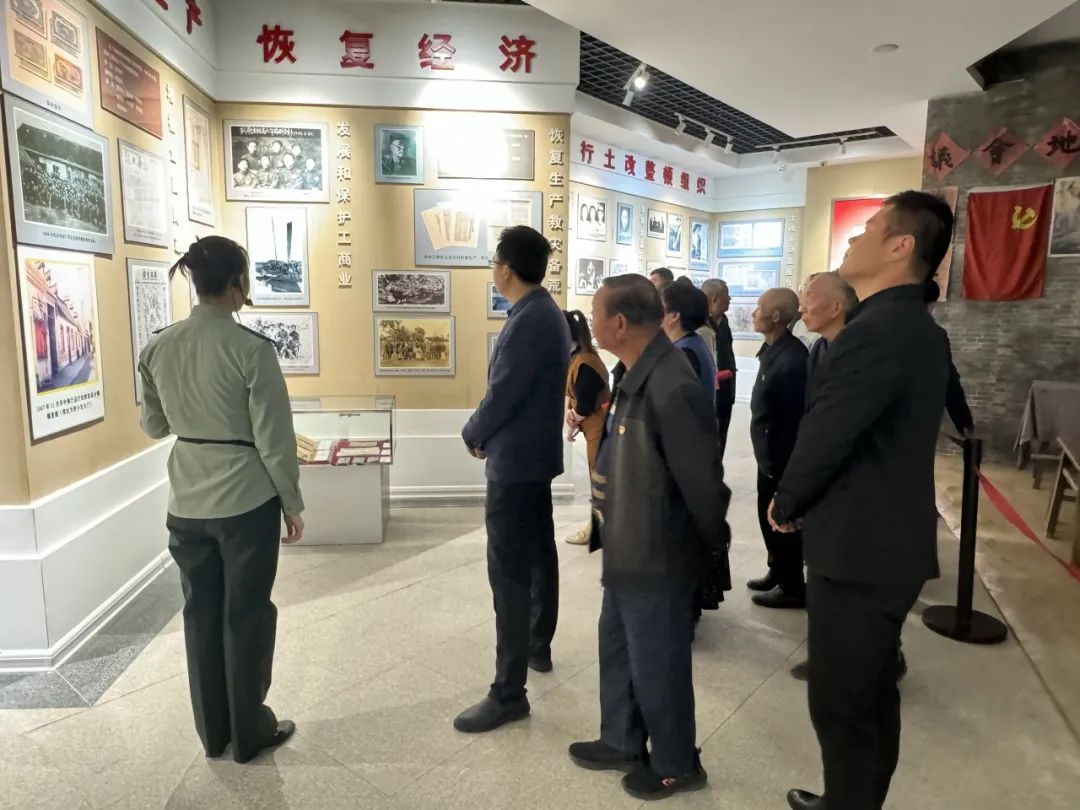 随后,在解说员的带领下,新老党员们以史为轴,立足红色文化,穿过仿真复原的旧址“大门”,依次有序参观了“东方欲晓”“石破天惊”“车轮滚滚”“将星璀璨”“鹤鸣东方”五个展厅。1000余幅纪实的历史图片,200多件传奇的馆藏文物,全方位、多角度的展现了红色历史,给大家带来强烈的视觉冲击和心灵震撼的同时,也对历史有了更深刻的了解。讲解员激情热烈的讲解让党员们置身华中工委的红色传奇历史,感受陈丕显、惠浴宇、韩培信等老一辈革命先辈们矢志不渝的爱国情怀。