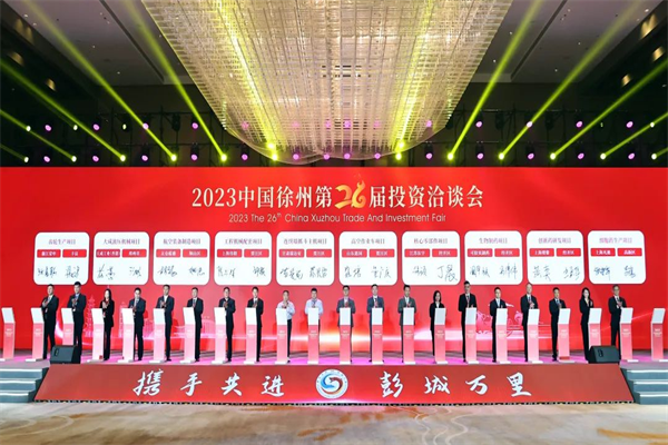 近日,2023中国徐州第二十六届投资洽谈会在江苏徐州举办。大会以“携手共进·彭城万里”为主题,200余位国内外知名企业的代表汇聚一堂、共话发展。现场“343”创新产业集群、现代服务业等领域的53个项目签约,协议投资总额1040.2亿元。
