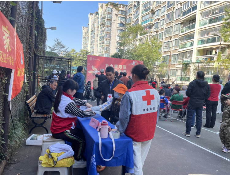 菊花吐蕊,桂花含香,岁岁重阳,今又重阳。为弘扬“人道、博爱、奉献”的红十字精神,传承中华民族尊老、敬老、爱老、助老的优良传统美德,10月23日重阳节当日,秦淮区红会与各各街道红十字会联合在大光路街道、洪武路街道、秦虹路街道、双塘街道、瑞金路街道等区域,开展“情暖金秋 爱在重阳”的九九重阳节关爱主题活动,为老人们送去亲切问候和节日祝福。