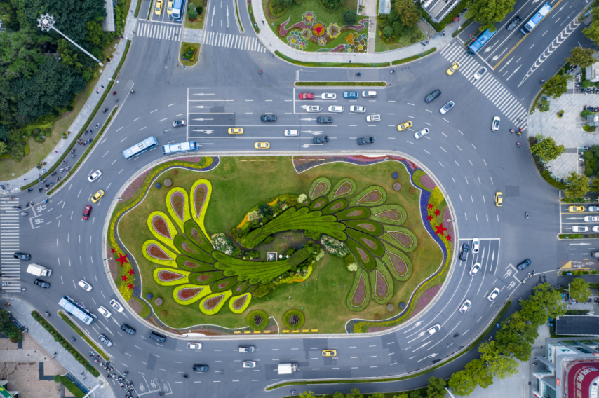 为减少施工对周边交通的影响,施工人员施工过程中在距离环岛路牙6米内,沿孔雀外围通过围挡进行围合,围挡区域不占用路面。加强现场施工车辆的组织管理,人员避开早晚高峰进出,封闭作业。材料进场在夜间进行,设专人指挥,降低对交通的影响。
