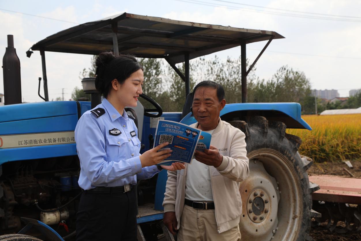 近日,淮安市公安局淮阴分局果林派出所民警赵鑫走进田间地头,将反诈知识带到人民群众身边去,倾力守护人民群众的“钱袋子”,有效增强广大人民群众防范电信网络诈骗的意识和能力。